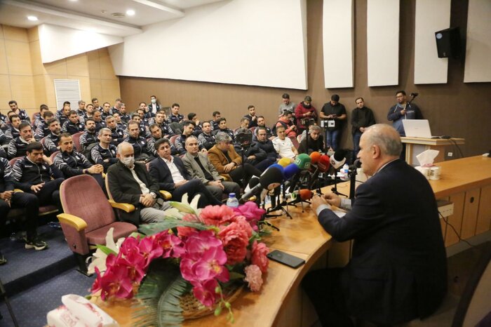 رئیس فدراسیون فوتبال دیروز در جمع داوران گفت: احترام به داوری قطعی است اما بحث من این است که دریچه انتقاد را نبندیم. منظور من این نیست که دریچه توهین را باز کنیم. مدیر باشگاهی که از جیبش هزینه می‌کند و نه حق پخش می‌گیرد و نه درآمد بالایی دارد، نباید حق انتقاد را هم از آن بگیریم. معنی این حرف‌ها این نیست که جلوی توهین را نگیریم بلکه باید زود هم مقابل آن ایستاد.